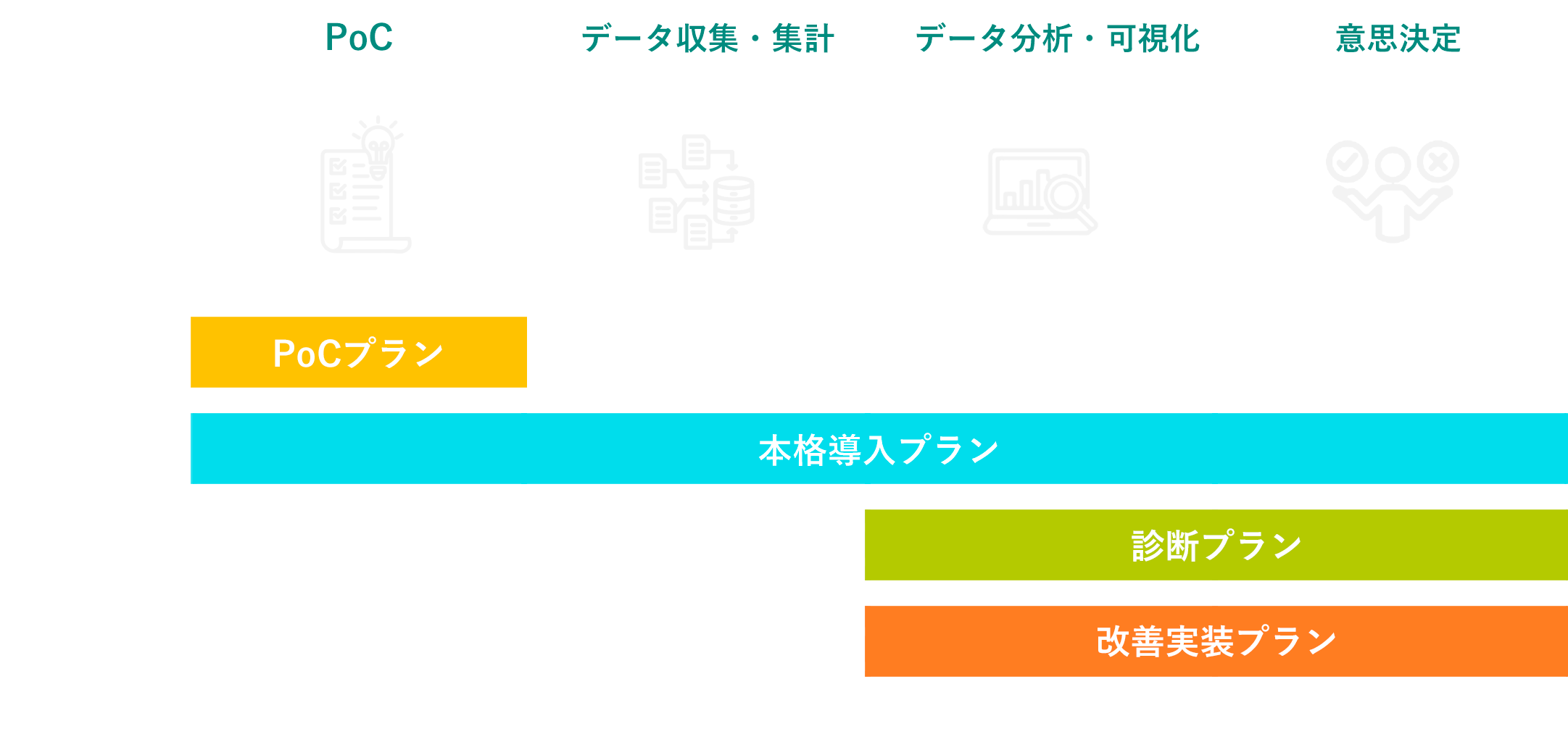 限定的な業務やデータを使ってKPI可視化を試験導入し、実際の業務でどう活かせるかを見える化。
